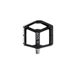 pedal plano liviano, cuerpo de aluminio con acabado CNC y eje CrMo, bordes biselados para mejorar el espacio libre en las curvas, gran superficie de contacto, diseño de perfil ultra bajo, nueve pasadores antideslizantes reemplazables y ajustables por lado, rodamientos de cartucho sellados.